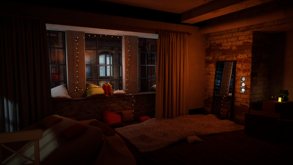 Cosy Apartment building set at night in the rain. Very atmospheric and ASMR like.